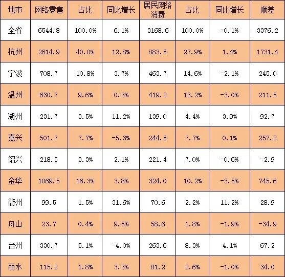 全省1-5月各行业网络零售基本情况 表5:全省1-5月各行业网络零售基本情况 单位:亿元 数据来源:浙江省商务厅