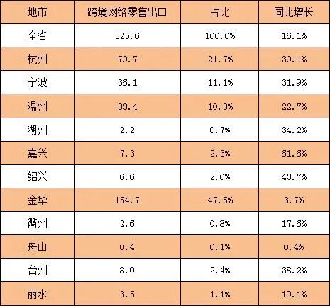 全省跨境网络零售出口基本情况 我市跨境网络零售出口7.3亿元,占全省跨境网络零售出口的2.3%,同比增长61.6%。