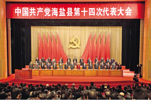 备受全县人民瞩目的中国共产党海盐县第十四次代表大会昨天在海盐大剧院隆重开幕。沈晓红同志代表中国共产党海盐县第十三届委员会向大会作题为《同心聚力谋跨越 担当实干谱新篇 为建设产业优质、环境优美、生活优雅的现代化滨海城市而努力奋斗》的报告。王碎社同志主持大会。